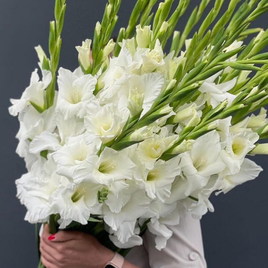 Букет из 19 белых гладиолусов