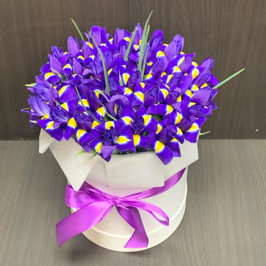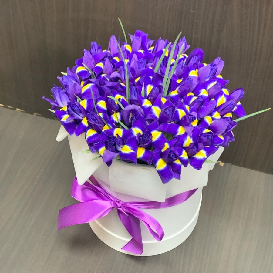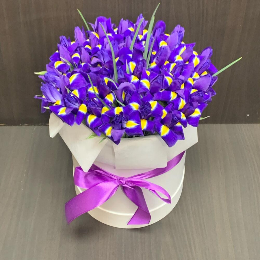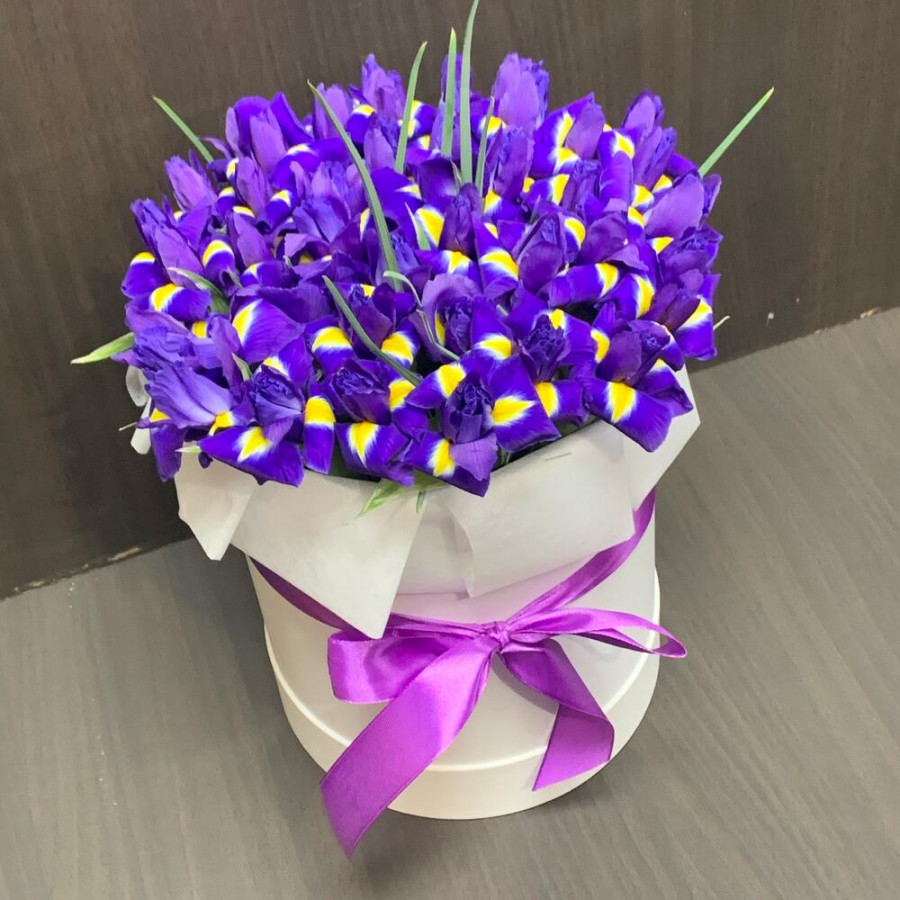 51 фиолетовый ирис в шляпной коробке в Суворове