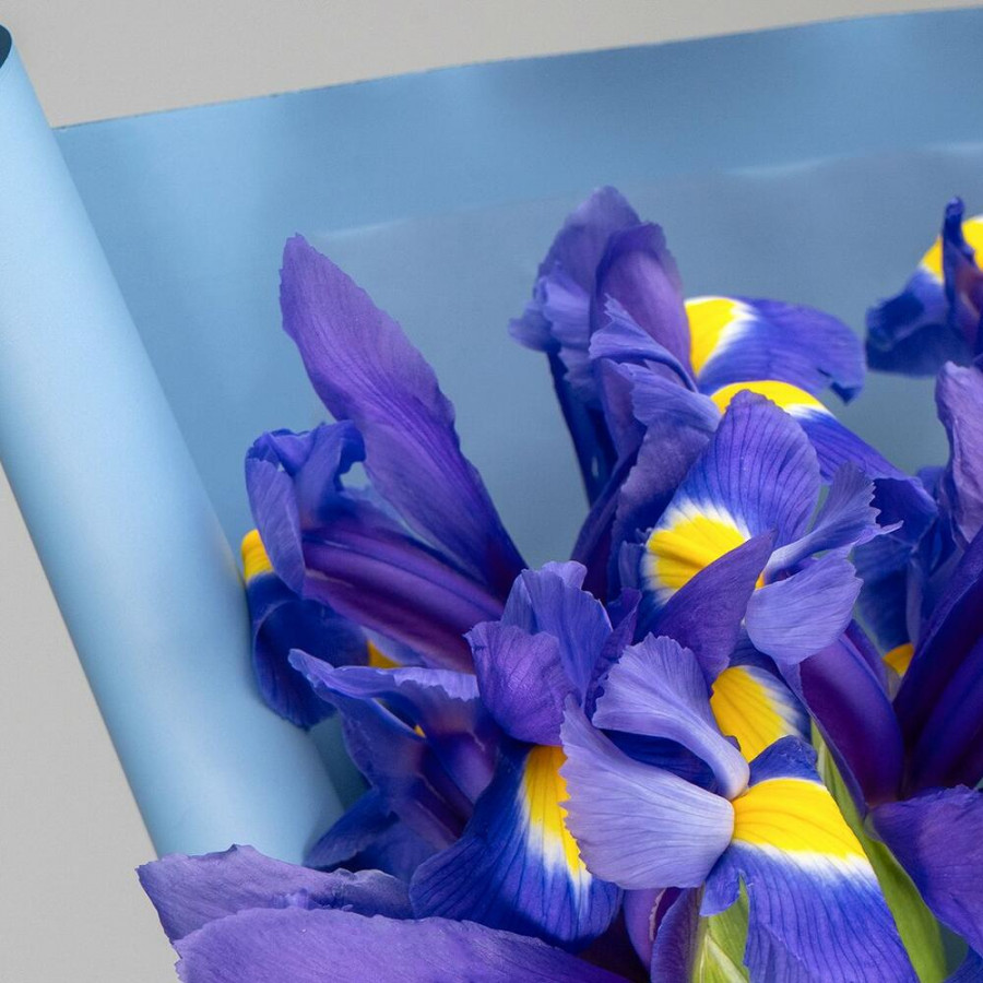 На фото букет из 7 синих ирисов. В составе: ирис 7 шт, дизайнерская упаковка 1 шт, атласная лента 1 шт, . Все цветы свежие и ароматные, букет красиво оформлен и отлично подходит для подарка. Доступна доставка цветов или самовывоз.