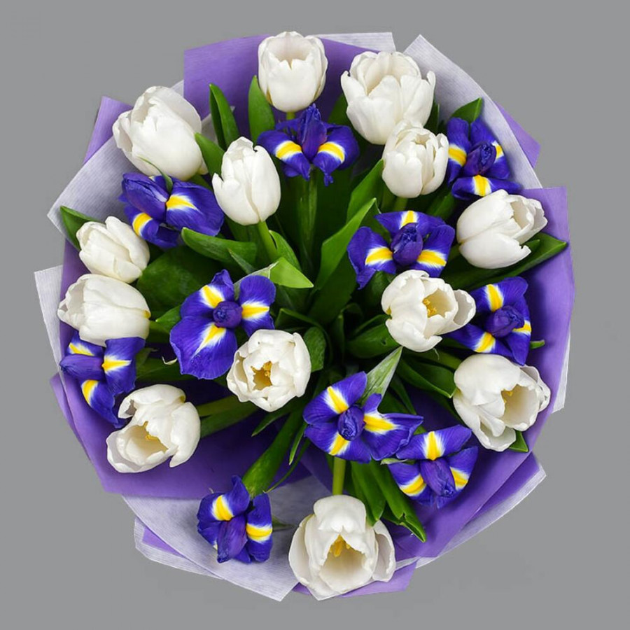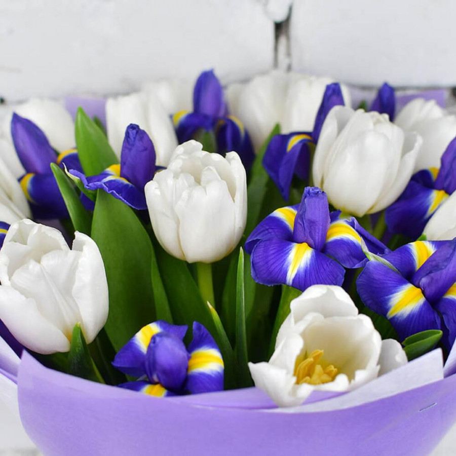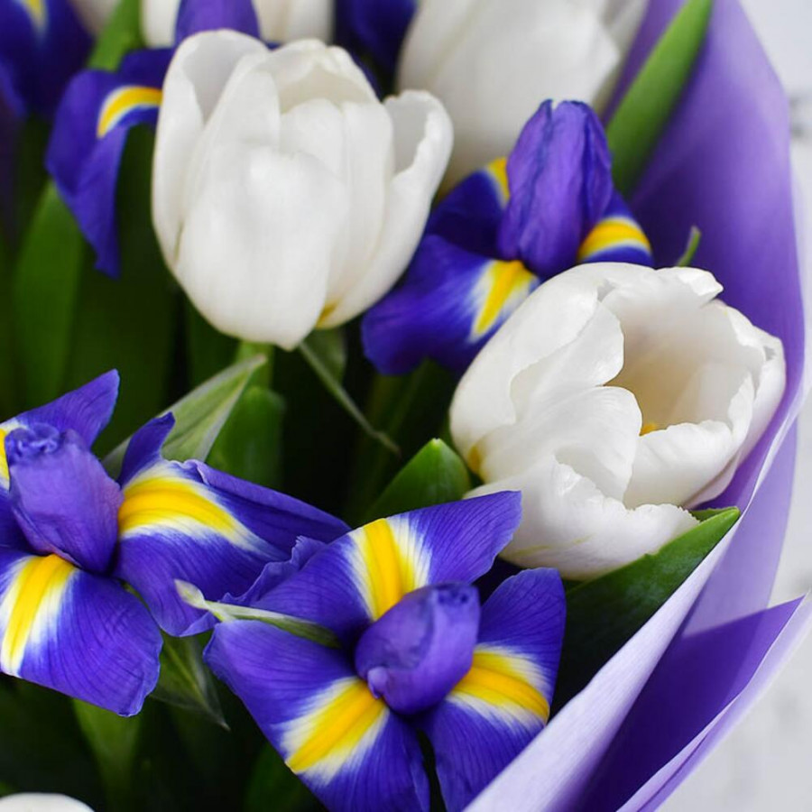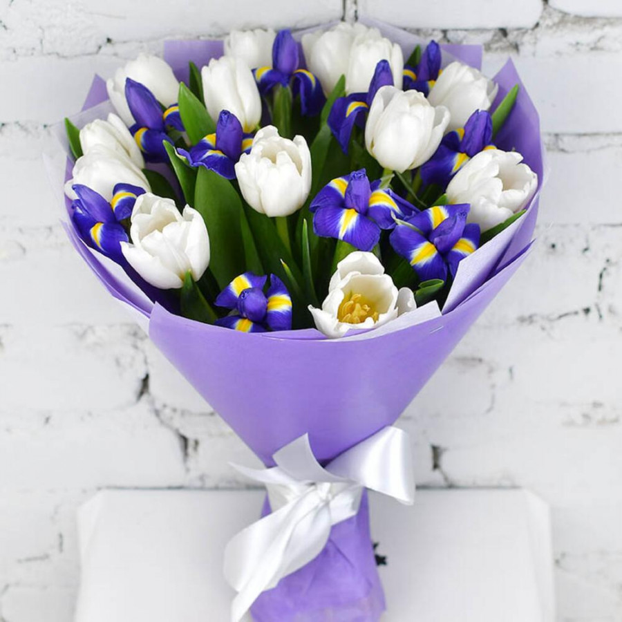 Букет из синих ирисов и белых тюльпанов в Суворове