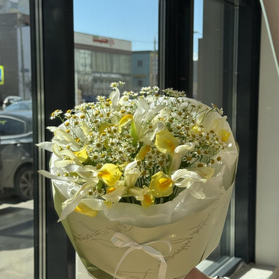 Букет из желтых ирисов и ромашек в Суворове